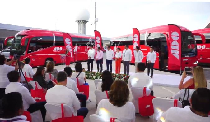 El evento se realizó en la terminal del aeropuerto internacional de Cancún, en donde la presidenta de Benito Juárez, Ana Paty Peralta de la Peña dio a bienvenida. A su vez Julio Flores, gerente general de ADO Cancún, explicó el proceso que se llevó a cabo para la ampliación de la flota vehicular.