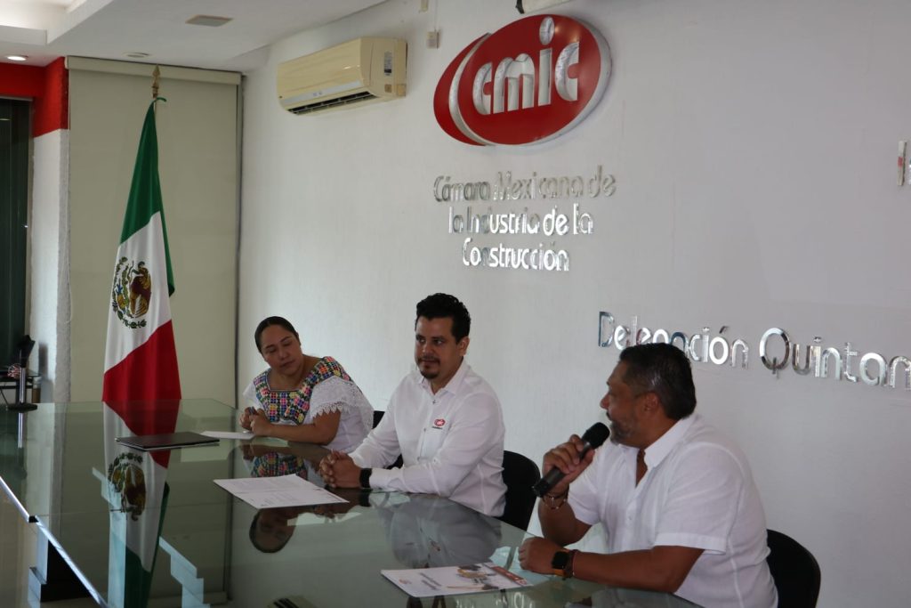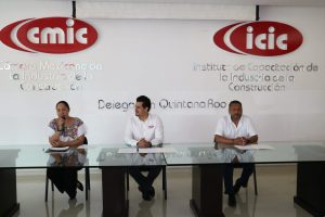 CHETUMAL, 7 de junio.- La Secretaria de Obra Pública (SEOP) Irazú Sarabia May, el director del Instituto de Infraestructura Física Educativa de Quintana Roo (Ifeqroo) José Rafael Lara Díaz y el presidente de la Cámara Mexicana de la Industria de la Construcción (CMIC) encabezaron un conversatorio en el que se intercambiaron opiniones y se compartieron datos sobre el plan de obra pública estatal en este año.