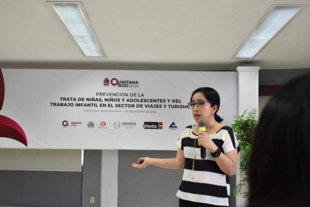 En el mensaje de bienvenida a la conferencia y panel “Prevención de la Trata de Niñas, Niños y Adolescentes y del Trabajo Infantil en el Sector de Viajes y Turismo”, que se realizó en el auditorio de la Canaco Chetumal con una nutrida participación de empresarios del sector de viajes y turismo, así como personas servidoras públicas de los tres niveles de Gobierno.