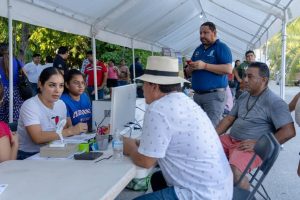 TULUM, 29 de junio.- El fraccionamiento Guerra de Castas en la cabecera municipal fue sede de la exitosa jornada “Presidente Cerca de Ti”, que impulsa la administración de Diego Castañón Trejo acercando los servicios de 38 dependencias municipales.