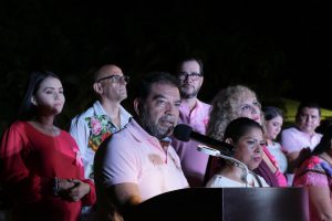 CHETUMAL, 3 de octubre. – Para sensibilizar a mujeres y hombres sobre la importancia de la detección temprana del cáncer de mama, el diputado Humberto Aldana Navarro presidente de la Junta de Gobierno y Coordinación Política (Jugocopo) encabezó, junto a diputados de la XVII Legislatura, el encendido rosa de la sede del Poder Legislativo marcando el inicio de las actividades de Octubre Rosa, mes de la sensibilización sobre el cáncer de mama.