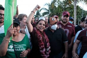 PUERTO MORELOS, 25 de abril.- Mara Lezama, candidata de Morena a la gubernatura, garantizó hoy que encabezará un gobierno honesto, responsable y austero, que desterrará la corrupción de Quintana Roo con el ejemplo del presidente Andrés Manuel López Obrador, para que los recursos alcancen para todos.