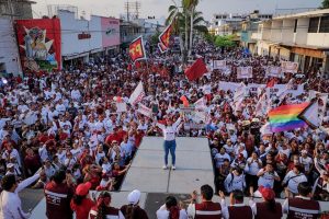 Para concluir el mitin de cierre de actividades proselitistas le tocó el turno a Yensunni Martínez Hernández quien en dos ocasiones hizo distinciones entre los invitados especiales, en la persona de Luis Gamero Barranco a quien saludó y abrazó y entonces dijo que Morena no solo va a ganar el 2 de junio, va a arrasar. “Que se escuche lejos, que se escuche fuerte y claro, Morena llegó para acabar con la injusticia social y su triunfo es del pueblo para el pueblo”.