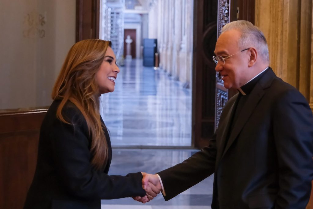 ROMA, Italia; 12 de diciembre. – La gobernadora Mara Lezama Espinosa se reunió con Edgar Peña Parra, Sustituto de la secretaria de Estado del Vaticano (encargado de la política de la Santa Sede), con quien conversó sobre el modelo de gobierno de humanismo mexicano y el trabajo en la construcción de obras que son las vías de igualdad y paz para los ciudadanos.