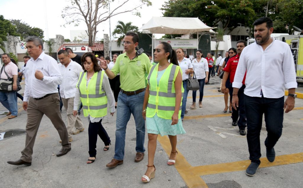 CANCÚN, Q. Roo.- Como parte de las actividades de la “Semana de Salud y Seguridad en el Trabajo” en Quintana Roo, en el marco del Día Nacional de Protección Civil, con la participación conjunta de representantes de los tres órdenes de gobierno, se llevó a cabo un simulacro de incendio para la evacuación de algunas dependencias del Ayuntamiento de Benito Juárez, que se encuentran en los edificios adjuntos al Palacio Municipal.