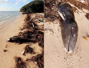 *Pudo morir a causa de la contaminación generada por el sargazo acumulado en el Mar Caribe o su edad