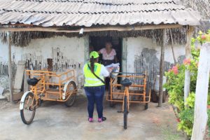 Cumpliendo los protocolos de higiene, el equipo de voluntarios entregó el apoyo alimentario a las familias de la alcaldía, caminando calle por calle y casa por casa, hasta llegar a los lugares más apartados en donde habitan familias enteras.