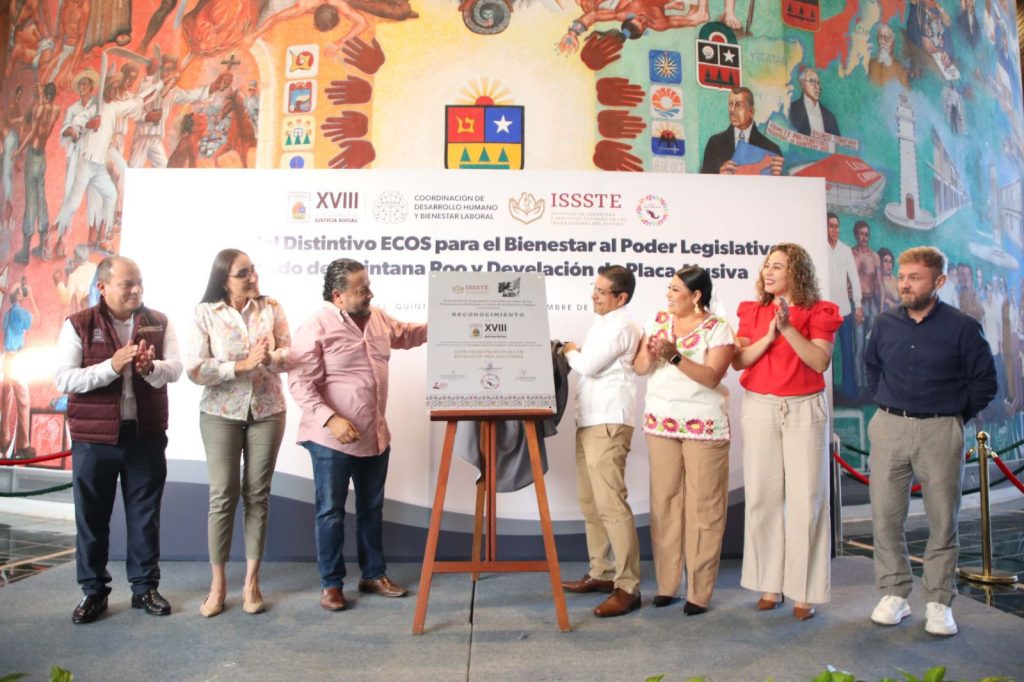 CHETUMAL, 26 de noviembre. – La XVIII Legislatura se convirtió en el primer congreso local del país en recibir el Distintivo ECOS para el Bienestar, en reconocimiento al impulso de buenas prácticas para promover el autocuidado y la prevención entre los trabajadores del Poder Legislativo.
