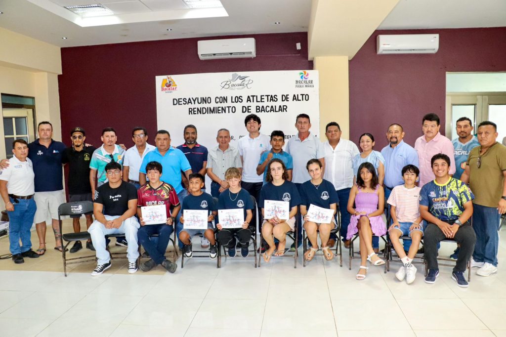 BACALAR, 19 de septiembre. – Con la finalidad de reconocer el esfuerzo y preparación de los atletas que representan al décimo municipio en los diferentes torneos municipales, estatales, regionales y nacionales, el presidente municipal José Alfredo Contreras Méndez les entregó reconocimientos y convivió con ellos en ameno desayuno.