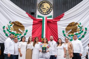 Chetumal, 6 de marzo. – Los tres poderes del Estado, entregaron de manera póstuma a María de la Soledad Leona Camila Vicario Fernández de San Salvador, mejor conocida como Leona Vicario, la medalla al mérito Distinguida Quintanarroense “María Cristina Sangri Aguilar”, por ser una mujer precursora en abrir espacios para las mujeres.