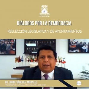 Jorge Sánchez Morales, Magistrado Presidente de la Sala Regional Guadalajara del Tribunal Electoral del Poder Judicial de la Federación agradeció la invitación a participar en el Programa de Diálogos por la Democracia y destacó que fue el TEQROO el pionero a nivel nacional en escribir sobre Reelección en México, con la edición del libro Reelección “Temas de Análisis en Materia Electoral”, que coordinó la Magistrada Nora Cerón González, desde la Presidencia en 2018, en el que fue invitado a participar con el capítulo “La reelección legislativa y de Ayuntamientos en México”.