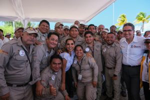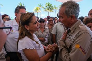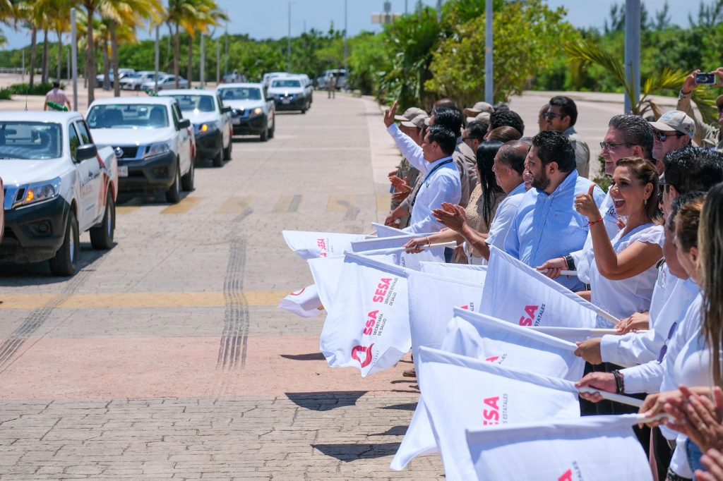 Acompañada del secretario de Salud de Quintana Roo, Flavio Carlos Rosado, la Gobernadora entregó vehículos, maquinaria e insecticida, y dio el banderazo para el fortalecimiento de las acciones, en un trabajo coordinado entre los tres niveles de gobierno, con la participación activa de la sociedad en general.