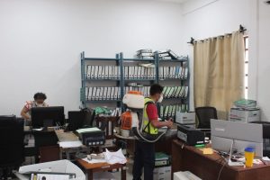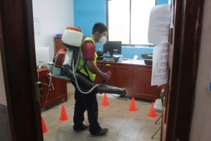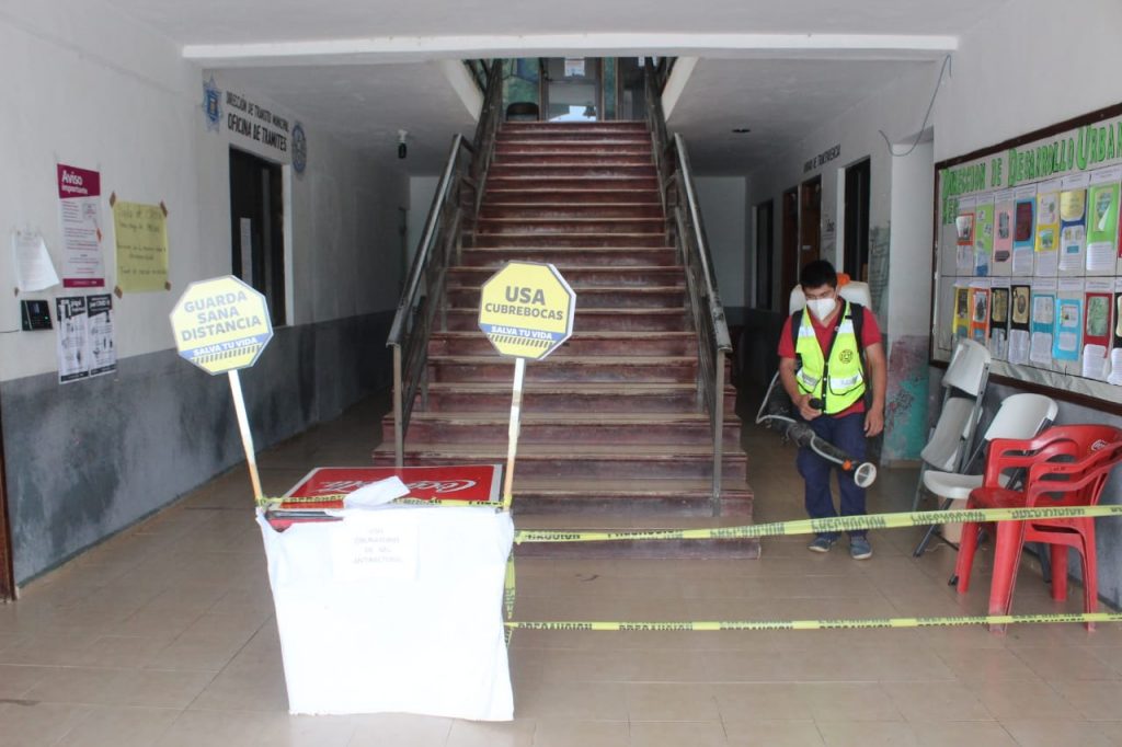 J. M. Morelos, Q. R. – Al reanudarse las labores presenciales en todas las áreas del Ayuntamiento de José María Morelos, la dirección de Protección Civil realiza jornadas de desinfección en oficinas para evitar contagios y la propagación del COVID-19.