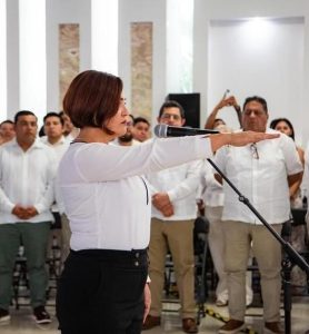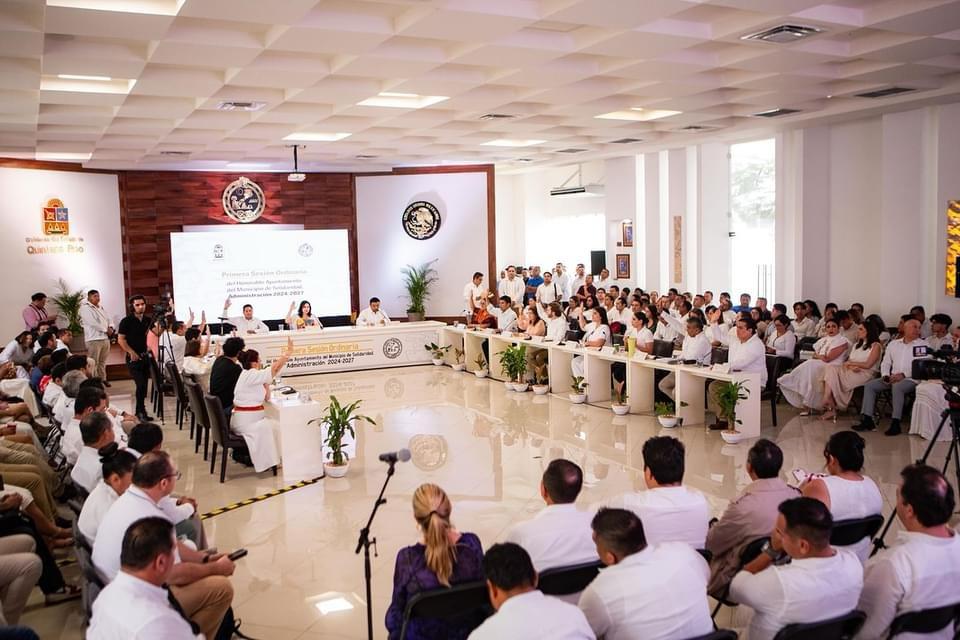PLAYA DEL CARMEN, 30 de septiembre 2024. – En el marco de la primera sesión ordinaria del Cabildo del Ayuntamiento de Solidaridad y amplia aprobación de sus concejales, la presidenta municipal Estefanía Mercado presentó los primeros nombramientos de funcionarios del gabinete; en esta plenaria Kira Iris San rindió protesta como regidora, en relevo de Roxana Lili Campos Miranda, quien declinó el cargo.