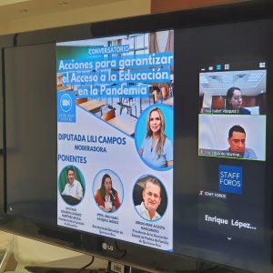 Al participar en el conversatorio “Acciones para garantizar el acceso a la educación en la pandemia”, la titular de la Secretaría de Educación de Quintana Roo (SEQ), Ana Isabel Vásquez Jiménez, dio a conocer las estrategias que se implementaron en el recién concluido ciclo escolar 2019-2020, en el contexto del confinamiento en casa debido a la contingencia sanitaria por el COVID-19.