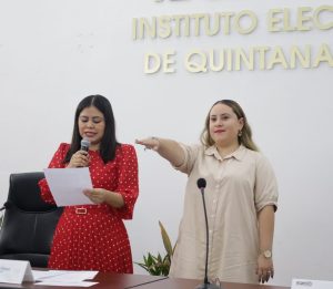 Es por ello que ambas servidoras electorales rindieron protesta en presencia de la Consejera Presidenta, Rubí Pacheco Pérez y Consejerías, Maisie Lorena Contreras Briceño, María Salomé Medina Montaño, Claudia Ávila Graham, Elizabeth Arredondo Gorocica, Adrián Amilcar Sauri Manzanilla y Juan César Hernández Cruz, quienes también integraron la Comisión Temporal que realizó la valoración curricular y entrevistas a las propuestas en su oportunidad.