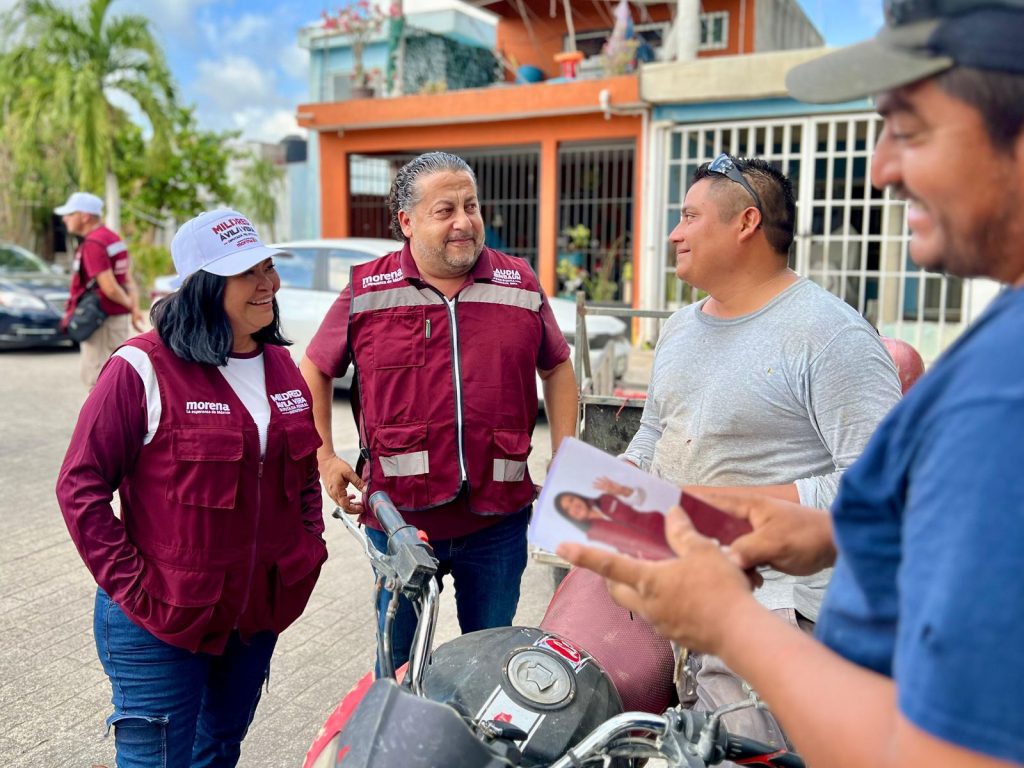 Mildred Ávila encabezó una activación en el cruce de las avenidas Nichupté y La Luna y por la tarde saludó a vecinos de la región 103 junto con Eugenio Segura Vázquez, candidato a senador.