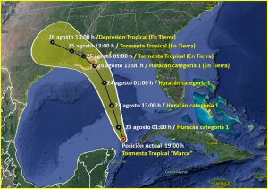 Esta noche y madrugada, se pronostica que “Marco” continúe intensificándose al norte de Cancún, Q. Roo Y SE CONVERTIRÁ EN HURACÁN LEJOS DE LAS COSTAS DE QUINTANA ROO CON DIRECCIÓN A ESTADOS UNIDOS DE NORTEAMÉRICA.