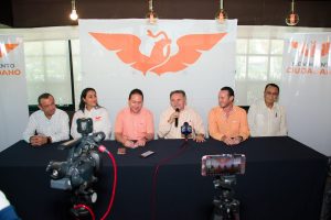 En la conferencia de prensa también estuvieron presentes la Secretaría de Organización de la Coordinadora Estatal, Paola Cervera; el empresario Eloy Peniche; y el Secretario de Asuntos Municipales de MC en el estado, Carlos Cortés, quien asistió en representación del regidor de Benito Juárez, Jesús Pool Moo.