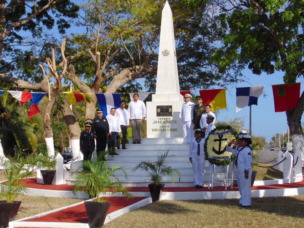 Cabe recordar que el 21 de abril de 1914 es una fecha histórica para esta Institución, en la que el pueblo veracruzano, junto con el Teniente José Azueta y el Cadete Virgilio Uribe, así como sus compañeros de armas, efectuaron con honor y valentía la defensa de la patria, preservando la Soberanía Nacional, enfrentando a las tropas estadounidenses que invadieron el puerto de Veracruz, dejando un legado que hoy prevalece en esta noble Institución, cuya misión es Servir a México.