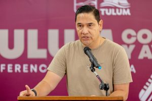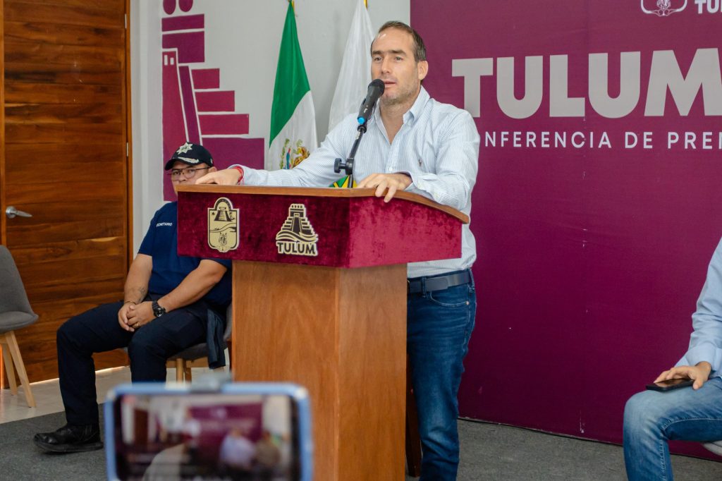 TULUM, 22 de septiembre. – En un ejercicio de transparencia con la ciudadanía, el presidente municipal Diego Castañón Trejo encabezó este día la conferencia semanal matutina “Tulum Comunica y Avanza” en la que se informaron de los avances en seguridad pública, la limpieza de sargazo en las playas y sobre la protección a los animales.