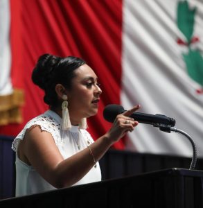 Cinthia Marisol Pereira Campos habló sobre la inclusión financiera de niñas y adolescentes quintanarroenses; Andrea Ayvar Gallardo se pronunció por la eliminación de todos los tipos y modalidades de la violencia contra las mujeres y las niñas, al igual que Vasty Karelly Yam Espinosa.