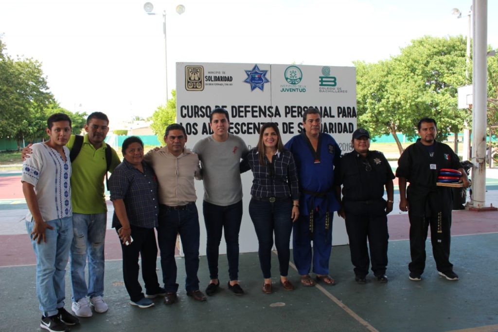 Solidaridad, Quintana Roo .-El gobierno de Solidaridad que encabeza la presidenta Laura Beristain Navarrete, a través del Instituto de la Juventud y en coordinación con la Dirección General  de Seguridad Pública y Tránsito Municipal, realizó el taller de “Defensa Personal y Táctica” dirigido a jóvenes estudiantes  de entre 15 a 18 años de edad, como parte de las acciones que se llevan a cabo para tener un municipio seguro.
