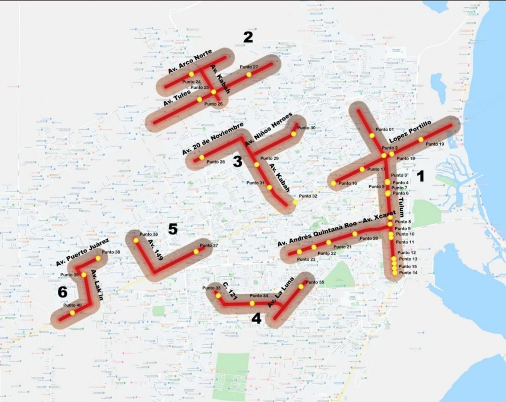 Y la Zona 6 contempla las avenidas López Portillo, Lak´in y Puerto Juárez, con 99 puntos de alto riesgo y 3 puntos de señalización.