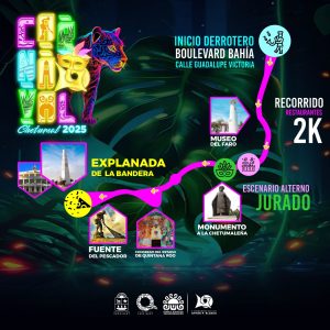 Este año el tradicional desfile regresa al Boulevard Bahía. El derrotero inicia a partir del 27 de febrero, con la ruta desde la calle Guadalupe Victoria, a lo largo del Boulevard y hasta llegar a la Explanada de la Bandera.