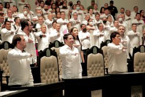 Chetumal, 8 de octubre. – En el marco de la Sesión Solemne de la XVII Legislatura con motivo del 48 aniversario de Quintana Roo como estado libre y soberano, la gobernadora Mara Lezama Espinosa hizo un llamado a todos los quintanarroenses para encaminar nuevamente al Estado a su destino de grandeza, a través de un cambio de conciencia para lograr una transformación profunda de la vida pública.