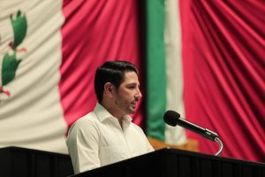 La presidenta de la Mesa Directiva, la diputada Mildred Ávila Vera dio la bienvenida a las autoridades civiles y militares que acudieron a la sesión solemne celebrada en el salón de sesiones del recinto oficial del Poder Legislativo.