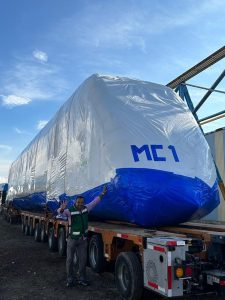 A las 5:00 a.m. de este lunes, personal de la SICT revisó el embalaje y la logística de traslado que comprende en su ruta hacia su destino final: los estados de Hidalgo, Tlaxcala, Puebla, Veracruz, Oaxaca, Tabasco, Chiapas, Campeche, Yucatán y Quintana Roo.