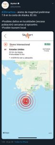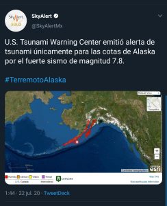 #ÚltimaHora – sismo de magnitud preliminar 7.8 en la costa de Alaska, EE.UU.
