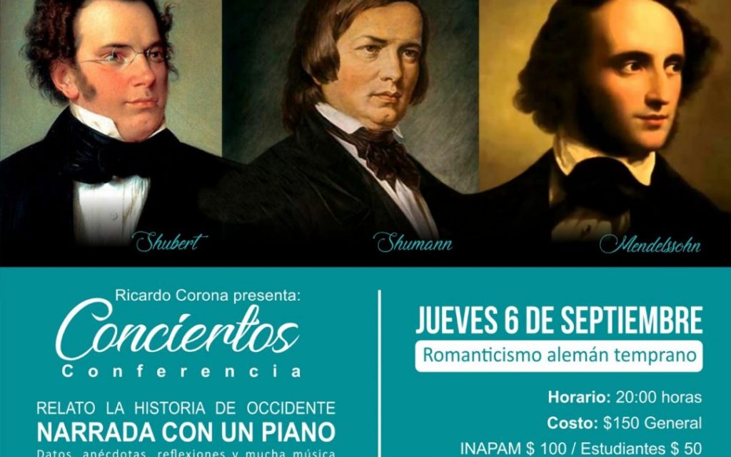 Así, bajo con el respaldo del Instituto de la Cultura y las Artes, que comanda Jacqueline Estrada Peña, el maestro interpretará piezas inolvidables de los compositores Franz Schubert, Robert Schumann y Felix Mendelssohn; y disertará sobre música e historia.