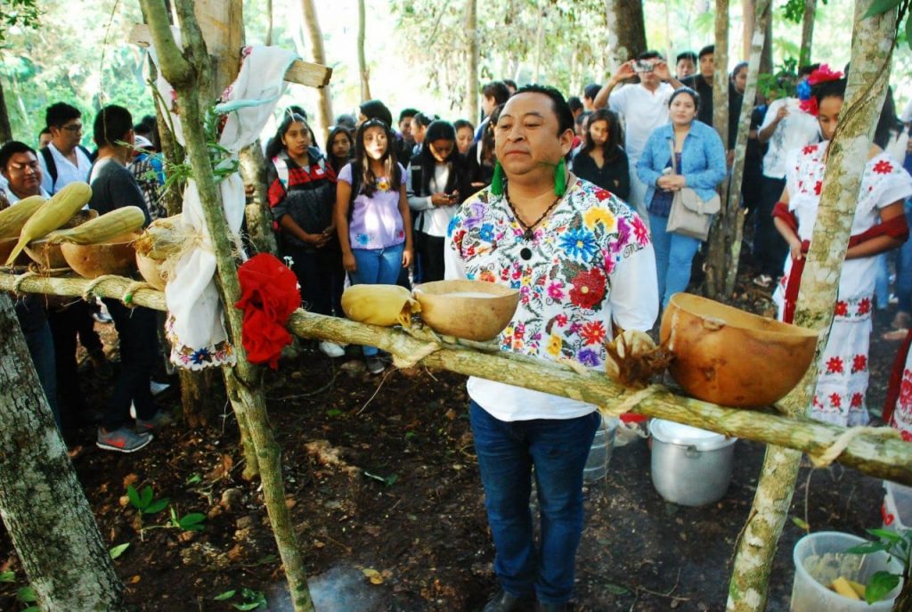 La ceremonia inició desde las 7 de la mañana en la plazoleta de la Universidad con una danza prehispánica, a cargo de estudiantes de distintos programas educativos, posteriormente, un nutrido grupo de alumnos y alumnas se trasladaron al Centro ceremonial, donde, el profesor Ismael Briceño Mukul realizó la ceremonia, con un ofrecimiento de alimentos a la madre tierra, en este caso el elote sancochado y atole nuevo.