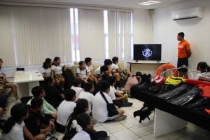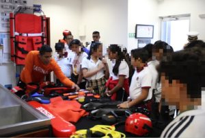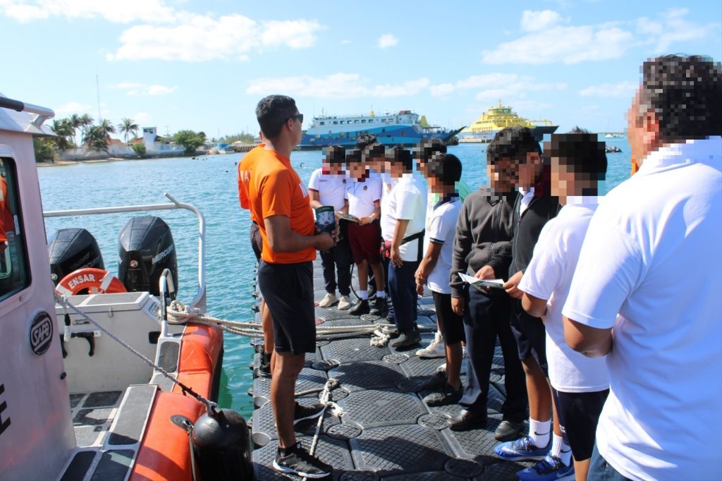 Posteriormente, se integraron en un recorrido que contempló la toma de la fotografía oficial de la visita, proyección de videos alusivos a la Armada de México, demostración canina, exposición de equipo de Búsqueda y Rescate en las instalaciones de la Estación Naval de Búsqueda, Rescate y Vigilancia Marítima (ENSAR) Isla Mujeres, así como visita a una embarcación tipo Defender.