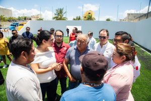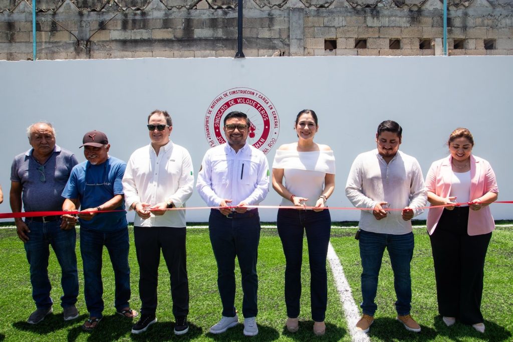 PLAYA DEL CARMEN, 20 de mayo. – La presidenta municipal Estefanía Mercado encabezó la inauguración de una cancha de fútbol 7 y otra de básquetbol en el emblemático Sindicato de Volqueteros “José Quiam Chan”, uno de los más antiguos de esta cabecera municipal y símbolo del trabajo colectivo que hoy se suma a la construcción de paz y prosperidad que encabeza su administración.