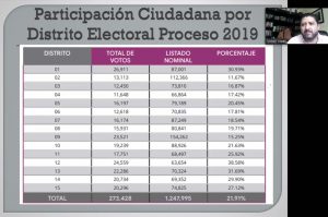 Y como ejemplo, mencionó que, en el 2015, Quintana Roo ocupo el 4o lugar a nivel nacional de las entidades con más inasistencia a las urnas y fueron los jóvenes de 18 a 29 años el mayor porcentaje de abstencionismo y en contraste, la mayor participación se registró en el sector de población de 60 a 79 años.