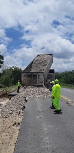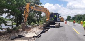 “El Centro SCT Quintana Roo informa que se inician los trabajos para la reparación de talud y acotamiento en la carretera Escarcega-Chetumal km 189. Favor de tomar sus precauciones.”