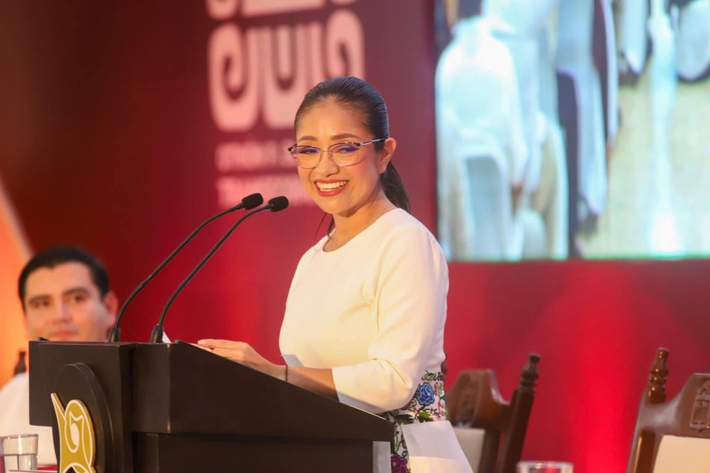 En el marco de la Novena Sesión Solemne de Cabildo, que contó con la asistencia de los titulares de los tres poderes constitucionales, la presidenta municipal destacó que cumple un año más de caminar de la mano de la ciudadanía, firmemente comprometidos con los principios de la Cuarta Transformación, para seguir transformando un Othón P. Blanco más justo, igualitario, de prosperidad y bienestar para todos.