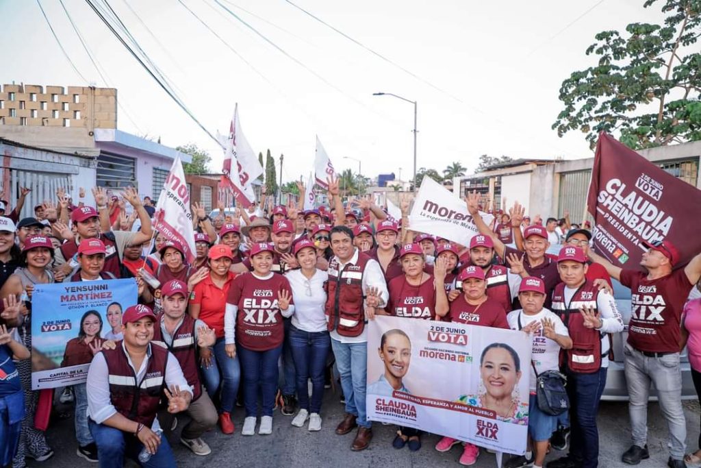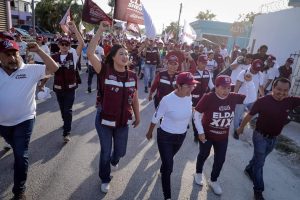 CHETUMAL, 21 de mayo. La ola de la Cuarta Transformación recorrió la colonia Arboledas de Chetumal, en una mega caminata encabezada por Yensunni Martínez, candidata a la presidencia de Othón P. Blanco; Anahí González, candidata al Senado; Elda Xix, candidata a la diputación federal del Distrito 02, Saulo Aguilar, candidato a la diputación local del Distrito 15 y Jorge Sanén, candidato a la diputación plurinominal, todos ellos por la coalición Sigamos Haciendo Historia en Quintana Roo.